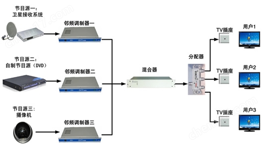 本系统搭建了完整的闭路电视系统,配置有邻频调制器、混合器等传输设备,也有DVD机、彩色摄像机和卫星接收机等三种节目源设备,还有液晶电视机输出设备,通过实训使学生全面掌握闭路电视系统工程技术和技能经验。